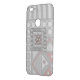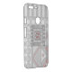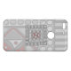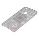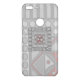 This concentric square features simple geometric patterns in shades of gray and red with the colors in the layers alternating when switching from the vertical to the horizontal.