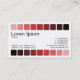 A stylish modern business/profile card template. Edged top and bottom with a row of nine round cornered squares going from a light pink through reds to black. Company details on the front with name and contact details on the back.