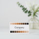 A stylish modern business/profile card template. Edged top and bottom with a row of nine round cornered squares going from a light brown to black. Company details on the front with name and contact details on the back.