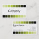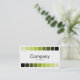 A stylish modern business/profile card template. Edged top and bottom with a row of nine round cornered squares going from light greens to black. Company details on the front with name and contact details on the back.