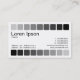 A stylish modern business/profile card template. Edged top and bottom with a row of nine round cornered squares going from a light gray to black. Company details on the front with name and contact details on the back.
