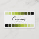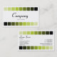 A stylish modern business/profile card template. Edged top and bottom with a row of nine round cornered squares going from a light green to black. Company details on the front with name and contact details on the back.