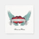 If it's true love, a plain old heart isn't gonna cut it. Two winged red hearts are joined by a banner spelling out "Always & Forever" on this napkin. Add some rockabilly style and you've got a heart that'll rock your world. Make sure to add your name(s), a special message or just delete the placeholder text to leave it blank. Available with matching products.