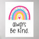 Always Be Kind Whimsical Boho Rainbow Kids Room Poster