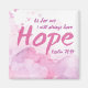 Beautiful watercolor stain in pink and white sets the stage in background for this beautiful HOPE design. Scripture from Psalm 71:14 reads, "I will always have HOPE." modern brush script with distressed edges (dark pink).