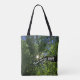This inspirational and positive tote bag features a photo of the sun slowly rising into the sky as seen through tree branches. A long and strong branch supports the light and dark leaves that dot the blue sky as a hint of the bright sun is seen. Along the strong thick tree branch is written "There is always hope" in white font and may be customized if you desire. The same design is featured on both sides of this grocery tote bag.