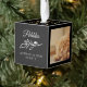 Cherish your special memories with our modern and minimal pet photo collage memorial photo cube ornament. Our Pet photo memorial ornament allows you to display 4 of your favorite pet photo memories for you to cherish. Pet's name is displayed in the center in white along with a leaf heart branch element that is displayed on a black square. The top of the ornament cube features a faux gold snowflake placed in the center. Customize with your pet's name and photos.
