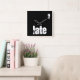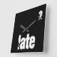 Too Late Time Quote Typography Funny 2 Late Text Minimalistic Design Black and White Home Decor White on Black Wall Clock, you can change the text