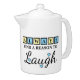 Always laugh gerbera flowers blue yellow teapot