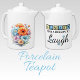 Brighten your tea time with this charming porcelain teapot featuring cheerful gerbera flowers and the uplifting phrase, “always find a reason to laugh.” Perfect for everyday use or as a thoughtful gift, this floral teapot blends beauty with positivity. Crafted from durable porcelain, it’s ideal for serving tea in style while adding a touch of happiness to your kitchen décor. A lovely choice for flower lovers, tea enthusiasts, and anyone who enjoys feel-good, inspirational home accessories.
