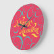 Always Reading Bright Pink Blue Yellow Swirls Large Clock