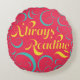 Always Reading | Bright Pink Blue Yellow & Swirls Round Pillow