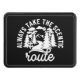 A camping design with saying “Always Take The Scenic Route” on it. Perfect camping gift for you, friends, relatives or colleagues.