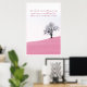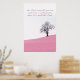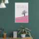 Einzelner Baum auf pinker Wiese mit blauem Himmel.