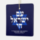 Am Yisrael Chai hebrew text with white personalized custom text and blue Star of David on navy blue background on one side of ornament.