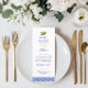 The Limone menu, which is part of the Limone Wedding Stationary Collection, beautifully captures the essence of an Italian-inspired celebration, combining the bright zest of lemons with the timeless elegance of blue mosaic tiles. The background features a rich, deep blue mosaic tile pattern, reminiscent of traditional Italian ceramics that add a touch of sophistication and old-world charm and a lively yellow lemon motif, complete with lush green leaves, adding a fresh, vibrant feel. Easily personalize this menu on the main page.
