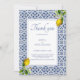 Amalfi Coast Italy Mediterranean Lemon wedding Thank You note, with blue tiles, lemon and blue frame. Just change with your photo on the back.