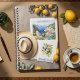 Stylish design notebook inpired by the Amalfi Coast. The design features a flat lay composition with a watercolor postcard of the Italian coastline, another card with lemons labeled “Amalfi Coast,” fresh lemons, olive leaves, and a straw hat—all evoking a relaxed Mediterranean summer atmosphere. The overall aesthetic is warm, elegant, and reminiscent of Italian travel and la dolce vita.