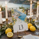 Create a beautiful and elegant table setting with this Amalfi Coast lemon wedding menu, inspired by the charm of the Italian Mediterranean coastline.