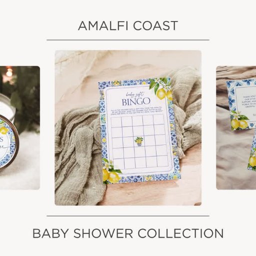 Inspired by the charm of the Amalfi Coast, this diaper raffle card features watercolor lemons, Mediterranean tile patterns, and elegant blue typography. A fresh, vibrant detail to complement your Italian citrus baby shower.
