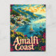Immerse yourself in the dreamlike beauty of the Amalfi Coast with our travel ad illustration. This captivating piece captures the essence of the coast, where pastel-hued villages cling to dramatic cliffs, and the azure waters of the Tyrrhenian Sea stretch to the horizon. Picture yourself meandering through narrow streets, enjoying local cuisine, and basking in the warmth of the Mediterranean sun. Embark on a journey to the Amalfi Coast, where every corner is a canvas painted with the vibrant hues of coastal splendor.