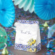 Amalfi Positano Vietri blue Majolica tiles lemons wedding favor box, Mediterranean themed blue white and yellow tiles with bunch of citrus with lemons and blooms in blue ceramics vase wedding welcome sign personalized favor boxes thank you favors
