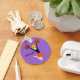 Custom designed colorful cheerleader with orange and black pom poms and uniform on a purple background. Background color and name Amanda can be changed, as needed.