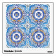 A blue, yellow and green ornamental design on a white background like seen on mediterranean tiles