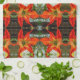 This Kitchen Towel showcases the intense beauty of a flower, an Amaryllis blooming in the garden. The original pattern by ZoeSPEAK was made from Zoe’s original photograph, a closeup, and the details of the flower, the shapes and color changes from the center outward are amazing. From soft shades of green blending into yellow, the bloom finishes with five outstretched petals in deep, rich oranges against a background of green leaves and muted brown wood.