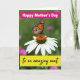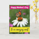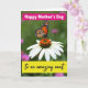 This card shows a bright orange winged insect with black vein markings and a ring of tiny white dots along the edges, resting gently on a white coneflower like it’s pausing for a quiet hello ❤️. The flower’s long white petals fan out around a textured orange-brown center, creating a soft focal point that feels calm and affectionate. Behind them, the background fades into a smooth green blur with a few faint pink blooms, giving the scene a private, almost tender atmosphere. The light is diffused and gentle, bringing out the fine textures in the wings and the flower’s center without harsh shadows. At the top, a hot pink banner stretches across with “Happy Mother’s Day” set in crisp white lettering. Near the bottom, a bright yellow banner carries the words “To an amazing aunt” in flowing black lettering, adding a friendly, caring tone 🌼. The banners sit over the nature scene without covering the insect and flower, leaving the orange wings and white petals clearly visible. The insect is angled slightly sideways on the bloom, with its wings open against the soft green background.