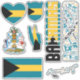 Amazing Bahamas Shapes National Symbols Sticker. Two country name stickers, one in the colors of the national flag and the other one covered in the Word Cloud with the words "Bahamas" written in the different alphabet forms and/or languages and fonts. All words are colored with the national colors used on the flag of Bahamas, Beautiful heart, shield (escutcheon) and map filled with the representation of the Bahamas national flag. Hand sticker with the two fingers up, representing victory filled with the colors of the Bahamas national flag. The last two stickers are national flag of the Bahamas and the national Coat of Arms. This is the great set of superb stickers with most of them unique and hand drawn. All stickers are fully customizable using "Customize it!" feature. You can mix and match them as you wish. If you want multiple hearts but no shield fire away. Maybe you want only hand with the victory sign? Easy, remove everything else and make multiple copies of the hand. These grand stickers are the perfect sticky gift for any occasion. Fire away and stick them where your heart desire! © 2022 CountriesOfTheWorld