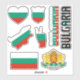 Amazing Bulgaria Shapes National Symbols Sticker. Two country name stickers, one in the colors of the national flag and the other one covered in the Word Cloud with the words "Bulgaria" written in the different alphabet forms and/or languages and fonts. All words are colored with the national colors used on the flag of Bulgaria, Beautiful heart, shield (escutcheon) and map filled with the representation of the Bulgaria national flag. Hand sticker with the two fingers up, representing victory filled with the colors of the Bulgaria national flag. The last two stickers are national flag of the Bulgaria and the national Coat of Arms. This is the great set of superb stickers with most of them unique and hand drawn. All stickers are fully customizable using "Customize it!" feature. You can mix and match them as you wish. If you want multiple hearts but no shield fire away. Maybe you want only hand with the victory sign? Easy, remove everything else and make multiple copies of the hand. These grand stickers are the perfect sticky gift for any occasion. Fire away and stick them where your heart desire! © 2022 CountriesOfTheWorld
