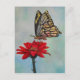 Monarch butterfly upon a soft background, sitting atop a bright red zinnia or dahlia or daisy....ok.....a pretty flower!