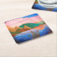 I painted this original acrylic landscape, which I titled “Water Reflections,” to fill a gap on my wall, I used acrylics on a very thick lining paper and outlined the colors with gold paint . The original art image on this unique coaster comes from my imagination but is based on the places I’d been to around Epping forest, there’s some lovely lakes amongst the woodlands. On one side the picture has been enhanced to vibrant colors of blues, greens, browns and pinks to express a warm day by the water side as the sun goes down, on the reverse side the image is in the original colors that it was painted in. This modern art sunset landscape painting is totally original and makes a one of a kind piece of contempory tableware.
