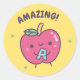 A doodle of a cute red apple holding on to an alphabet A. The text reads "Amazing!" Adorable design that is suited for kids and girls as a reward sticker for their amazing effort!