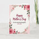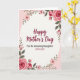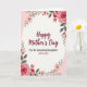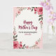 Designed with a soft cream center framed by a ring of pink flowers, this Mother’s Day card feels like a gentle embrace ❤️. The main words “Happy Mother’s Day” sit centered in deep maroon with flowing, calligraphy-like strokes that draw the eye first. Just beneath, “For An Amazing Daughter” appears in a smaller, tidy style, and “WITH LOVE” is placed below it in matching maroon, like a quiet note meant for someone close. Around the message, a floral garland creates a romantic, caring mood, as if the blooms are leaning in toward the words. Full roses with layered petals anchor the top right and bottom left corners, while smaller blossoms, buds, and green leaves fill the rest of the border. The outer background shifts into pale pink tones that make the cream panel glow, and the maroon lettering stands out clearly against it 🌼. Slender green stems curve along the edges, dotted with tiny buds and soft pink petals. Endlessly share Mother's Day sentiments.