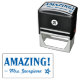 This fun rubber stamp design features the encouraging message "AMAZING!" and a personalized educator's name. It also features a decorative star shape. It could be used by a teacher or educator when marking assignments, to acknowledge that the student has done well.