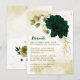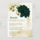 Beautiful emerald green ivory white and gold flowers with gold leaves botanical details enclosure card.