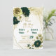 Beautiful emerald green ivory white and gold flowers with gold leaves geometric save the date invitation.