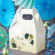 Beautiful emerald green ivory white and gold flowers with gold leaves botanical favor box.