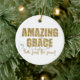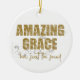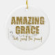 Beautiful faux gold glitter typography with music notes inside letters. Amazing Grace, how sweet the sound. Light silver musical note background swirl.