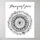 Hand drawn pen and ink drawing in a mandala style with the music notes to the melody of Amazing Grace around the outside border