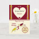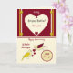 Designed in deep red, yellow and cream, with cute birds and hearts.