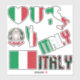Amazing Italy Shapes National Symbols Sticker. Two country name stickers, one in the colors of the national flag and the other one covered in the Word Cloud with the words "Italy" written in the different alphabet forms and/or languages and fonts. All words are colored with the national colors used on the flag of Italy, Beautiful heart, shield (escutcheon) and map filled with the representation of the Italy national flag. Hand sticker with the two fingers up, representing victory filled with the colors of the Italy national flag. The last two stickers are national flag of the Italy and the national Coat of Arms. This is the great set of superb stickers with most of them unique and hand drawn. All stickers are fully customizable using "Customize it!" feature. You can mix and match them as you wish. If you want multiple hearts but no shield fire away. Maybe you want only hand with the victory sign? Easy, remove everything else and make multiple copies of the hand. These grand stickers are the perfect sticky gift for any occasion. Fire away and stick them where your heart desire! © 2022 CountriesOfTheWorld