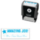 This positive rubber stamp design features the encouraging feedback message "AMAZING JOB!" and a personalized tutor name. It also features a decorative star shape. It could be used by a teacher, educator, instructor, or tutor when marking assignments, to indicate that a student has done well.