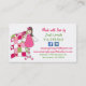 Pretty quilting or sewing business card done with graphic artwork of a pink, green, and white scalloped edge, with hearts along the bottom of the card. A sweet angle holding a heart shaped flower and a colorful pink, white, and green quilt decorates the front and back of the business card. Text in pink and green is fully customizable to suit your business needs. Social icons, on the back can be deleted or changed. Matching products are available.