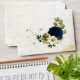 Beautiful navy blue ivory white and gold flowers with gold leaves botanical wedding envelope.
