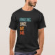 My 11 yo wore adult XL (5’7” 165#). The 8yo is small framed. She wore adult small and tied it in the back. Grandma wore adult large with long sleeve shirt underneath. Tall girl adult medium. Dark haired male adult large. Good quality dark Heather gray, Gildan brand shirt. -it was next up from basic choice and cost about $20 per shirt. Not too thick or thin. Washed and dried well, no major shrinkage. Not see-through. Can wear a bra under it fine. Screen print is just as shown and well done, front and back.