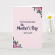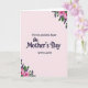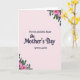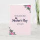 This card features a pale blush pink background that feels gentle and inviting, with floral clusters placed at the top right and bottom left like soft corner frames. The flowers look like full pink blooms paired with deep purple sprigs and rich green leaves, creating a sweet, affectionate mood ❤️. In the center, the first line of text reads “For An Amazing Sister” in a simple, neat style, set above the main message. The words “On Mother’s Day” sit directly beneath in a flowing, cursive-style look, giving the middle of the card a tender, romantic flourish. A final line, “WITH LOVE,” appears below in the same straightforward style as the first line, as if it’s a quiet signature between close family 🌼. The layout leaves plenty of open space around the wording, so the message feels calm and focused. The pink blossoms are softly shaded, with the purple sprigs and green foliage curling outward from both corners.