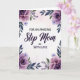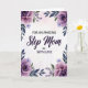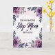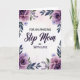 Designed with a calm white background washed with the faintest blush of pink, this card centers a loving message that feels close and affectionate ❤️. The main line reads “FOR AN AMAZING” near the top in small, neat dark lettering, setting up the focus below. “Step Mom” sits prominently in the middle in deep plum flowing lettering, giving it extra attention like a gentle embrace. Underneath, “ON WITH LOVE” appears in a simpler dark font that keeps the layout balanced and easy to read. Around the edges, a soft painted border of flowers and leaves creates a tender, garden-like frame, as if the words are being offered with a bouquet. Larger lavender and violet blooms open along the sides, while smaller periwinkle flowers tuck in between with clusters of blue-green foliage and little berry shapes 🌼. The petals show light-to-dark shading that makes them look slightly translucent, with deeper color pooling near the centers and along the outer border.